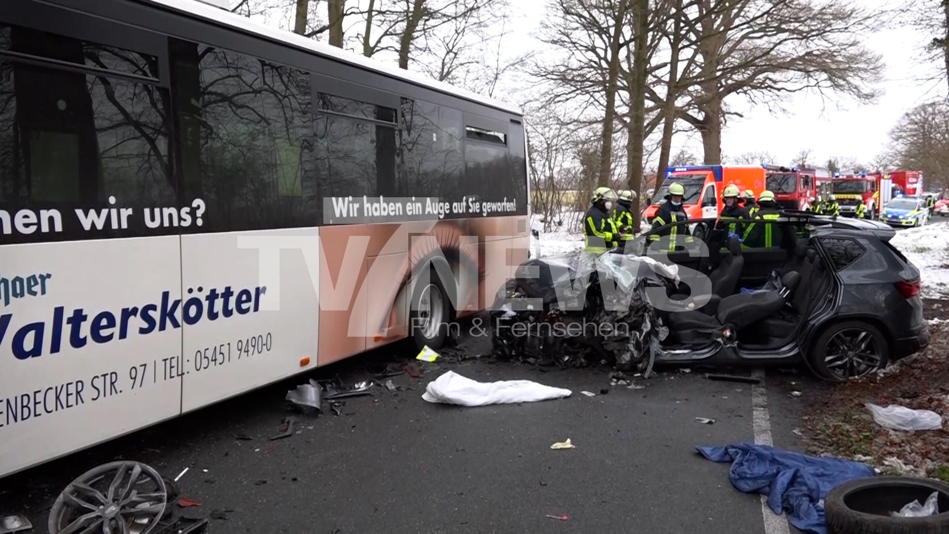 Nach ersten Informationen war der Schulbus von der Gesamtschule Westerkappeln kommend auf der Halener Straße unterwegs in Richtung Halen. Dann plötzlich und aus noch nicht geklärter Ursache kollidierten ein SUV und der Bus frontal. Das Auto verformte sich dabei so stark, dass der SUV-Fahrer massiv in seinem Auto eingeklemmt wurde. Die Feuerwehr musste den Mann, bei dem Lebensgefahr aufgrund des Unfallmechanismus nicht ausgeschlossen ist, mit schwerem technischen Gerät aus dem Fahrzeugwrack befreien. Alle elf Insassen des Busses, außer dem Fahrer, waren Schüler. Sie wurden zuerst in einer nahen Scheune untergebracht, dann vom Rettungsdienst gesichtet und anschließend mit leichten Verletzungen in Krankenhäuser gebracht.