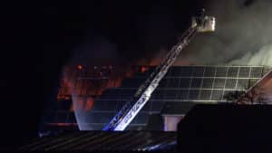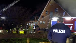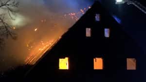 Die Feuerwehr kämpft mit einem Großaufgebot gegen die Flammen an, aber die Photovoltaikannlage auf dem Dach erschwert die Löscharbeiten. Zwei Drehleitern und etliche Trupps bekämpfen den Brand von verschiedenen Seiten. Doch dieser frisst sich in dem großen Gebäude immer weiter vor und wird vom Wind immer wieder angefacht. Trotzdem gelingt es den Kameraden das Übergreifen der Flammen auf das angrenzende Wohnhaus zu verhindern. Jedoch ist dies durch den Brandrauch und das Löschwasser aktuell nicht bewohnbar. Ein Ende der Löscharbeiten ist nach Stunden in Sicht – für die Einsatzkräfte wird es allerdings noch eine lange Nacht, denn es gilt noch alle Glutnester zu finden und einen Brandwache zu stellen. Und das, obwohl sie durch den Regen der unermüdlich vom Himmel fällt, komplett durchnässt sind.