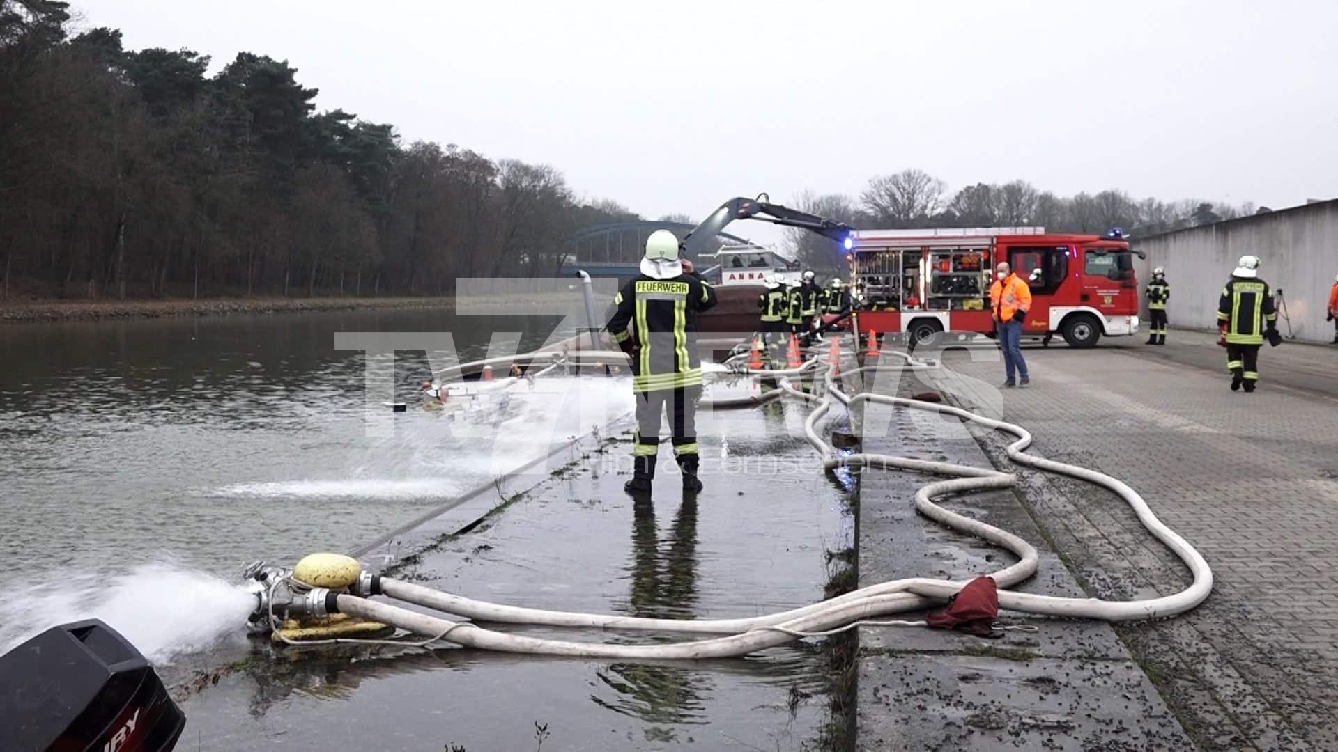 Nach bisherigen Informationen legte der Kapitän die „Anna“ am Montagabend an den Kai am Hafen. Am Dienstagmorgen bemerkte der Mann oder seine Crew dann die Leckage, aber es war schon zu spät – die „Anna“ sank immer weiter mit dem Bug in den Dortmund-Ems-Kanal. Sofort wurden Einsatzkräfte alarmiert, denn es drohte nicht nur das Binnenschiff zu sinken, sondern auch ein massiver Umweltschaden, denn es könnten 700 Liter Schiffsdiesel auslaufen. Bislang hält sich der Umweltschaden noch in kleinerem Rahmen, denn es sind wohl nur 30 bis 40 Liter Öl ausgelaufen. Allerdings hat sich dadurch bereits eine auf dem Wasser Ölschicht gebildet. Die Feuerwehr brachte daraufhin Ölsperren um das Schiff herum aus.