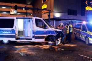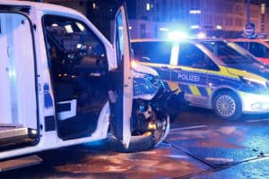 Mit Blaulicht, Martinshorn und zwei Gefangenen auf dem Weg zum Revier endet die Fahrt mit einer heftigen Kollision auf einer Kreuzung – Insassen des BMW müssen aus ihrem Fahrzeug geschnitten werden – Gefangene und Polizeibeamte schwer verletzt – Polizei muss Schaulustige weg schicken