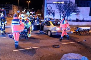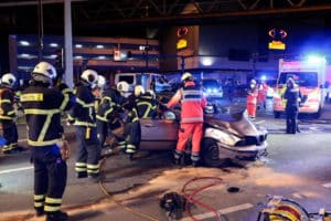 Gegen 21:37 Uhr wurden die Einsatzkräfte zu einem schweren Verkehrsunfall auf die B7 Kreuzung Alter Markt/ Fischertal in Wuppertal gerufen. Als die Rettungskräfte eintrafen, stellten sie einen verunfallten Gefangenentransporter der Polizei und einen 3er BMW auf der Kreuzung fest. In dem BMW war die Beifahrerin eingeklemmt und musste von der Feuerwehr rausgeschnitten werden. Der Fahrer konnte sich selbst befreien wurde aber auch schwer verletzt. In dem Polizeiwagen saßen zwei Beamte und zwei Gefangene in den Boxen. Sie waren in Alarmfahrt auf dem Weg zur Dienstelle als sie mit dem BMW frontal kollidierten. Auch die zwei Beamten wurden schwer verletzt und die zwei Gefangenen wurden leicht verletzt. Ersthelfer kümmerten sich um die Verletzten bis die Rettungskräfte eintrafen. Nicht jeder war jedoch zum Helfen da, einige viele mussten von der Polizei vom Unfallort weggeschickt werden, denn sie waren lediglich zum Gaffen gekommen. Zum genauen Unfallhergang konnte sich die Polizei noch nicht äußern.
