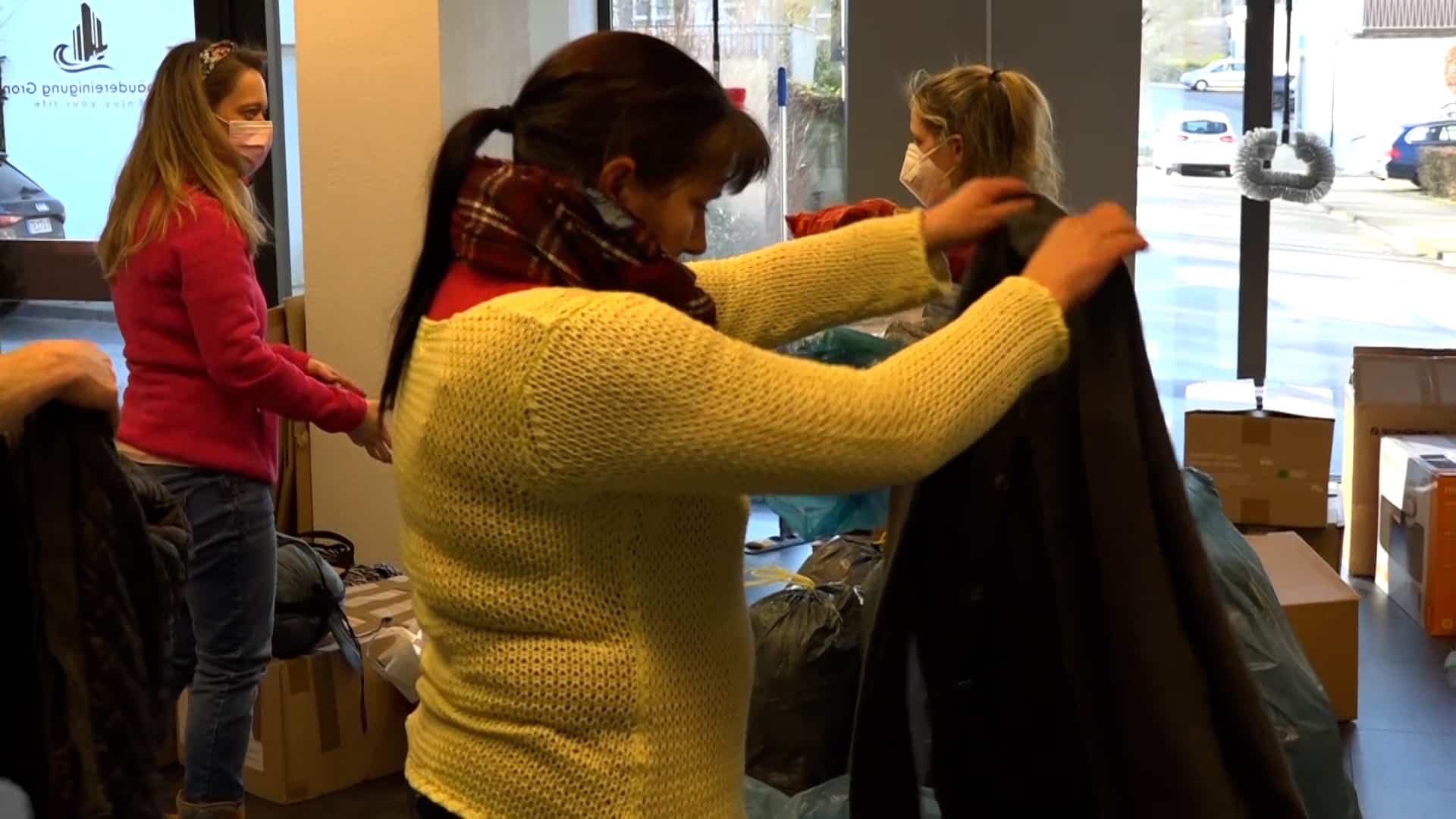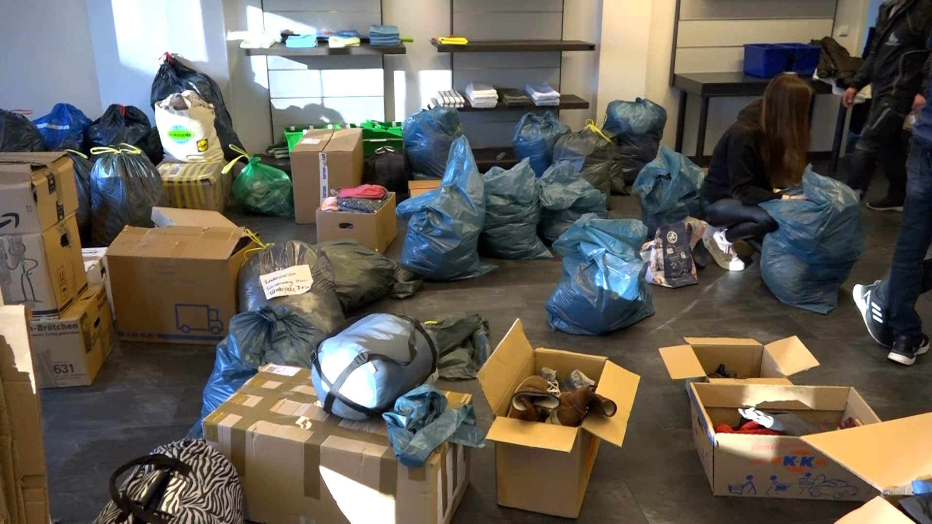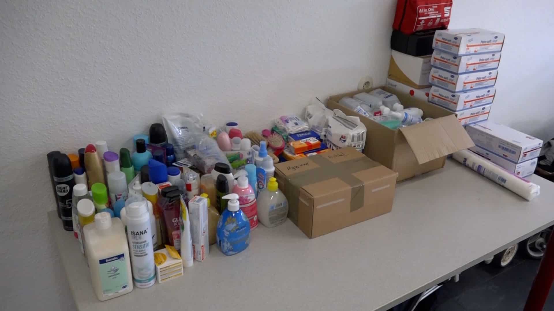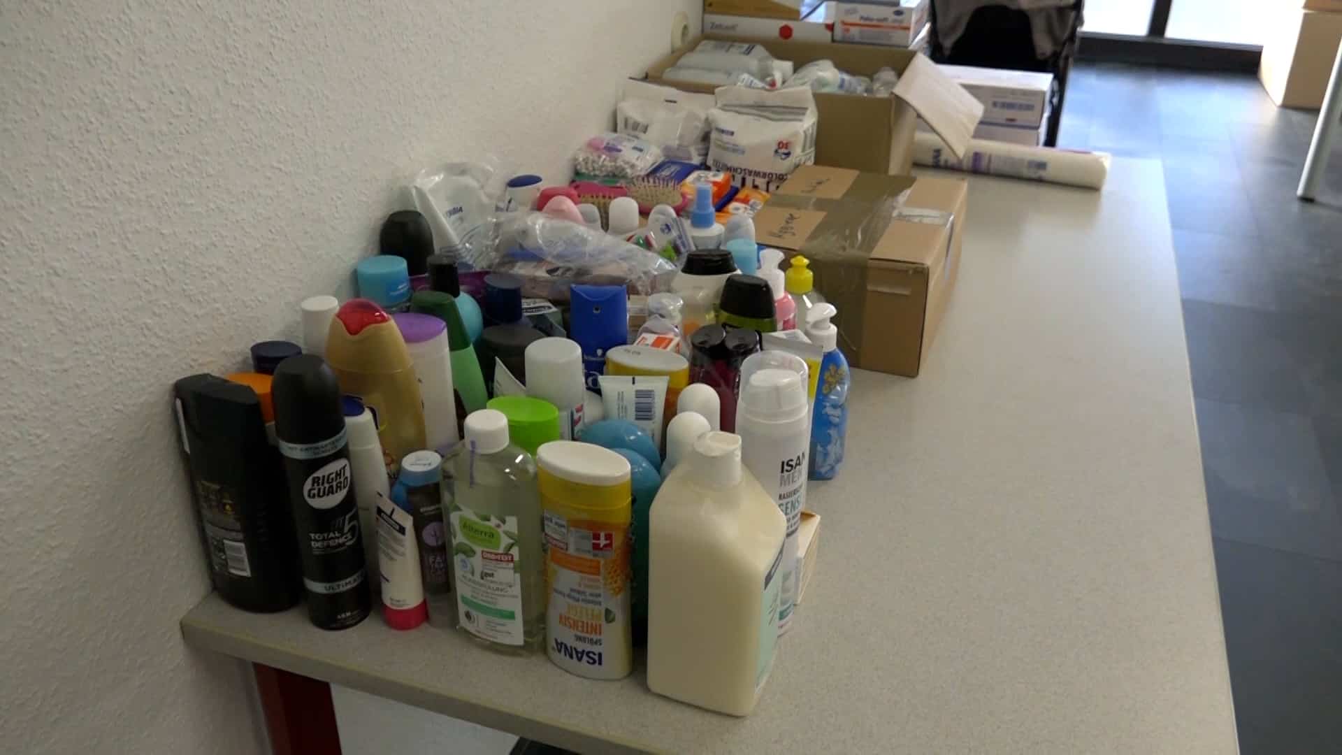„Es sind Schuhe, es sind warme Kindersachen, Damenkleidung, Herrenkleidung, es sind Konserven, es sind Masken, auch unter anderem, gerade durch Corona noch, PCR-Tests, Desinfektionsmittel, Verbandskästen, all das, was dort benötigt wird, kommt dort an“, so Pauline weiter. „Wir haben sofort zusammengesucht, wo wir es gelesen haben. Ja, auf jeden Fall, man kann ja sonst nicht viel machen und ich finde, das ist schon eine gute Sache“, erklärt Nadine, die Sachen abgegeben hat. „Wir haben Desinfektionsmittel gebracht, Decken, warme Kleidung, Kinderkleidung, Masken, ein bisschen Spielzeug und von allem ein bisschen und weil man damit etwas Gutes tun kann und man froh ist mit so was, ein bisschen zu unterstützen“, so Nadine weiter.