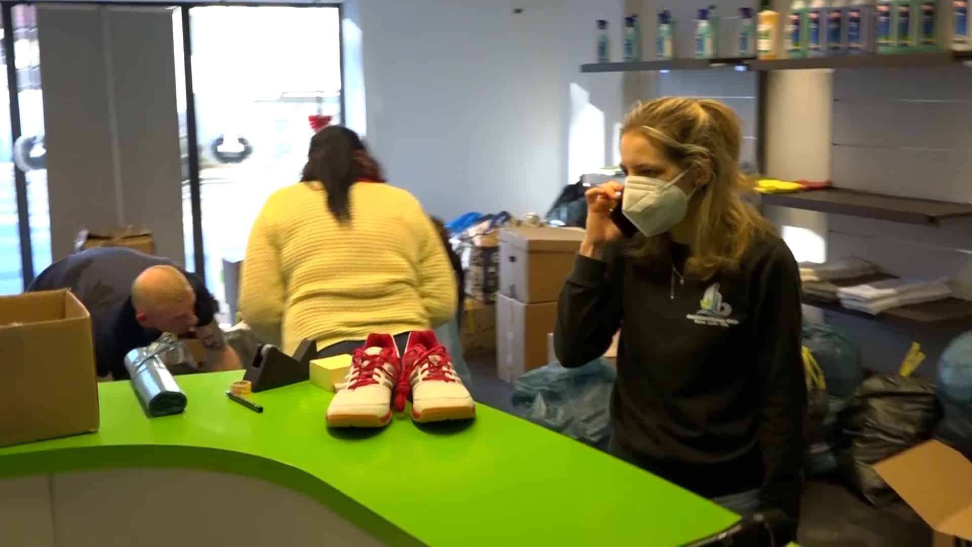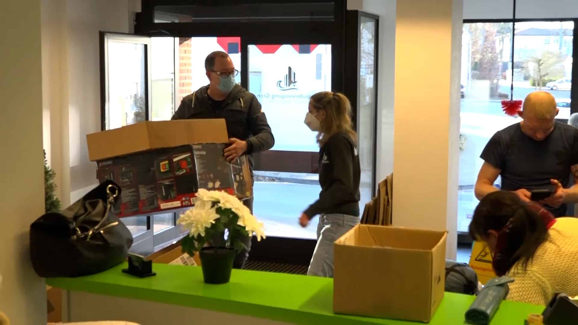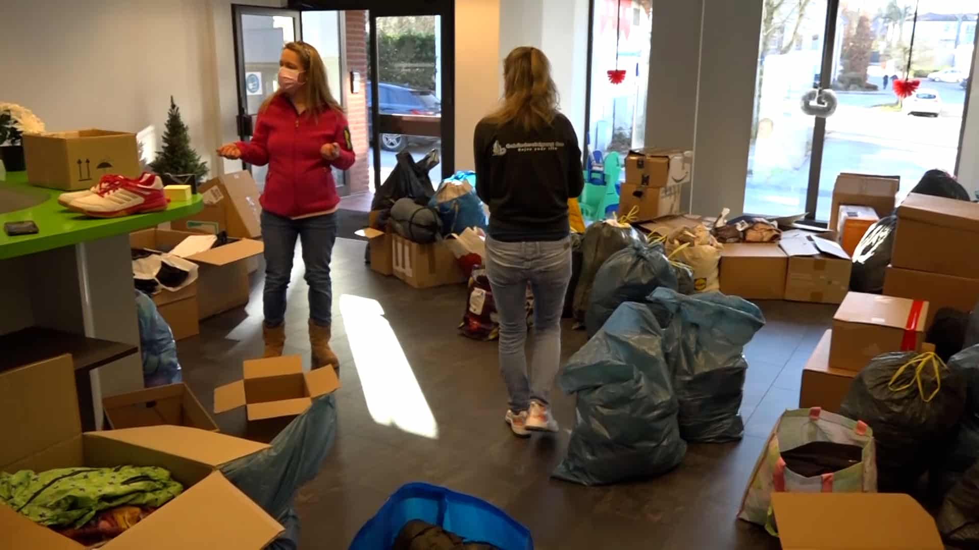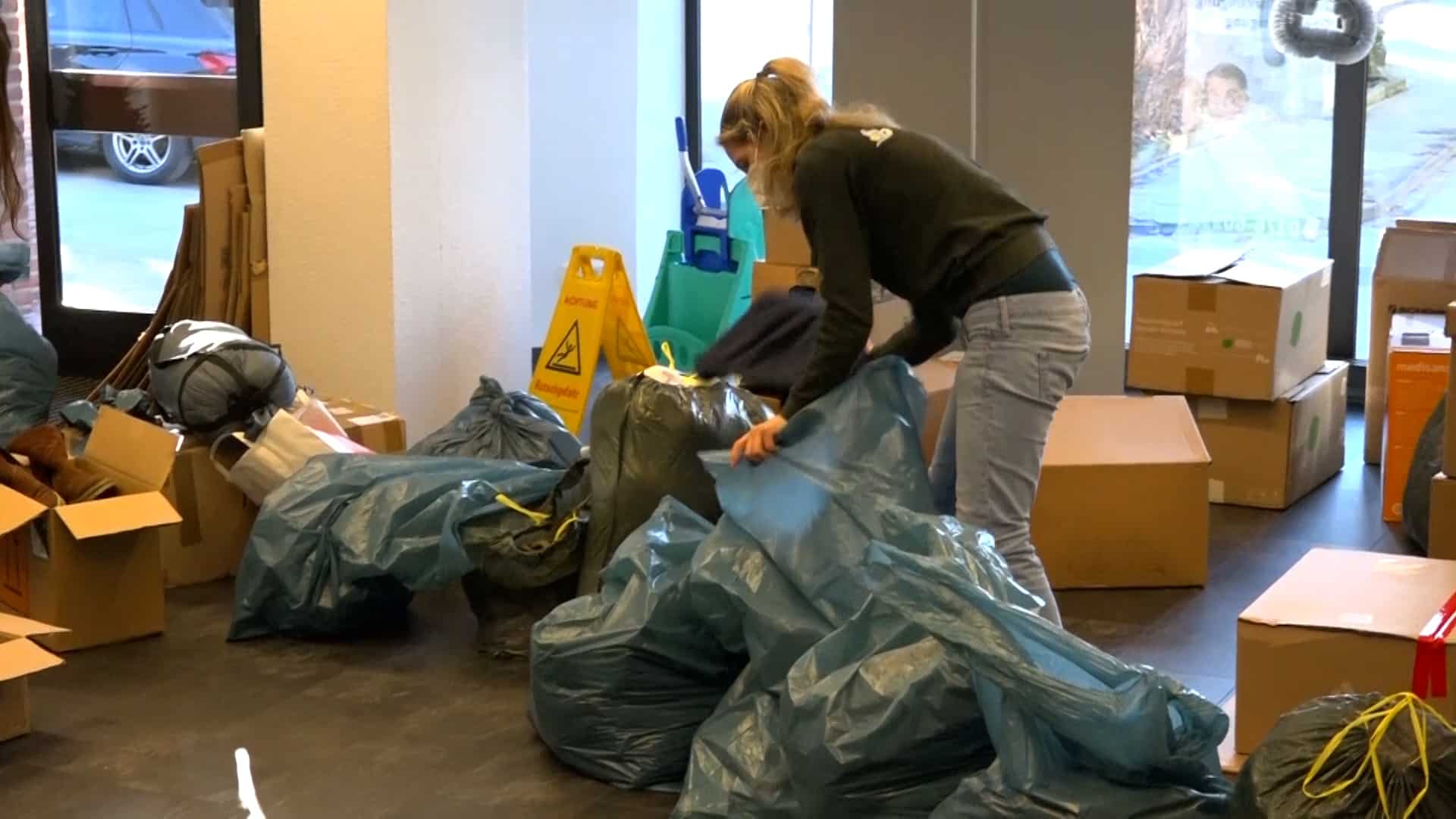 „Es sind Schuhe, es sind warme Kindersachen, Damenkleidung, Herrenkleidung, es sind Konserven, es sind Masken, auch unter anderem, gerade durch Corona noch, PCR-Tests, Desinfektionsmittel, Verbandskästen, all das, was dort benötigt wird, kommt dort an“, so Pauline weiter. „Wir haben sofort zusammengesucht, wo wir es gelesen haben. Ja, auf jeden Fall, man kann ja sonst nicht viel machen und ich finde, das ist schon eine gute Sache“, erklärt Nadine, die Sachen abgegeben hat. „Wir haben Desinfektionsmittel gebracht, Decken, warme Kleidung, Kinderkleidung, Masken, ein bisschen Spielzeug und von allem ein bisschen und weil man damit etwas Gutes tun kann und man froh ist mit so was, ein bisschen zu unterstützen“, so Nadine weiter.