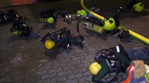 So schnell können sich andere nicht mehr retten, denn als die Feuerwehr kommt stehen von den 97 Bewohnern nur rund 40 auf der Straße. 13 weitere befinden sich auf den Balkonen und warten auf Hilfe. Drei von ihnen befinden sich in akuter Gefahr, die rettet die Feuerwehr zuerst, während ein anderer Teil der Mannschaft schon die Flammen bekämpft. Insgesamt holen sie bis auf vier Bewohner alle verbliebenen aus dem Gebäude, mittels tragbaren Leitern und Fluchthauben. Die anderen befinden sich nicht in Gefahr. Glücklicherweise gibt es nur drei Bewohner, die Verletzungen davontragen.