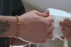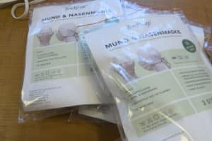 Die Optimierung geht natürlich weiter, wie auch Anke Küpper-Welzel betont: „Wir haben lange noch mal optimiert, dass wir diese Rundung hier schön hinbekommen, […], dass es wirklich auch angenehm ist zu tragen“. Haushaltsleinen hat sich hierbei als beste Alternative herausgestellt, denn es ist wesentlich flexibler als Baumwolle und trotzdem sicher. „Alles ist 100 Prozent Leinen und somit auch bei 95 Grad waschbar“, erklärt Küpper-Welzel. Denn auch das Paspelband, mit dem sich die genähten Schutzmasken am Kopf befestigen lassen, ist eine Eigenproduktion und ebenfalls komplett zu 100 Prozent aus Leinen. So haben auch Allergiker kein Problem diese Masken zu tragen. Der erste Schwung an genähten Masken geht nun in den Versand und die nächsten sind schon wieder in Produktion. „Ich möchte mich bedanken, die uns bislang unterstützt haben, […] bei jedem Einzelnen, der diese Maske trägt, denn jeder einzelne schützt damit seinen Mitmenschen“, so das Fazit von Thomas Welzel und sein Appell an die Bevölkerung.