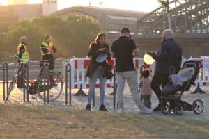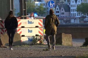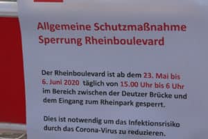 Der Kölner Rheinboulevard am Montagabend. Langsam geht die Sonne unter, die letzten Strahlen tauchen nicht nur den Dom, sondern auch die Promenade in ein warmes Licht. Viele Menschen sind unterwegs, um den frühlingshaften Wochenbeginn gemütlich ausklinken zu lassen. Für die Ordnungskräfte der Stadt sind es allerdings zu viele. Denn seit Samstag gilt für den Boulevard von 15 bis 6 Uhr ein Betretungsverbot. Grund: Zu viele Sonnenhungrige nutzen die Flaniermeile, sodass die Corona-bedingten Mindestabstände nicht eingehalten werden. Am Montagabend reichte es dann Polizei und Ordnungsamt. Kurzerhand sperrten die Kräfte die Wege mit Barken und Flatterband ab. Spaziergänger wurden aufgefordert, den Bereich zu verlassen. Radfahrer mussten umkehren. Viele Passanten haben Verständnis für das Handeln. „Ich finde es in Ordnung, dass wir weg müssen. Auch wenn es voll schade um den Frühlingssonnenuntergangsabend ist“, erzählt Hanna Weiser. „Die Gruppen, das war schon arg. Die Mindestabstände wurden da nicht eingehalten“, meint Tomani Deatta. Und er fragt: „Ich kann es nachvollziehen. Aber ob das was bringt?“ Daran zweifelt auch Roswitha Keck-Bock, die ebenfalls durch die Polizei weggeschickt wird. „Ich finde es überzogen. Ich kann verstehen, dass Maßnahmen ergriffen werden sollten, aber nicht, dass in Zeiten, wo wenig los ist, das durchgezogen wird.“