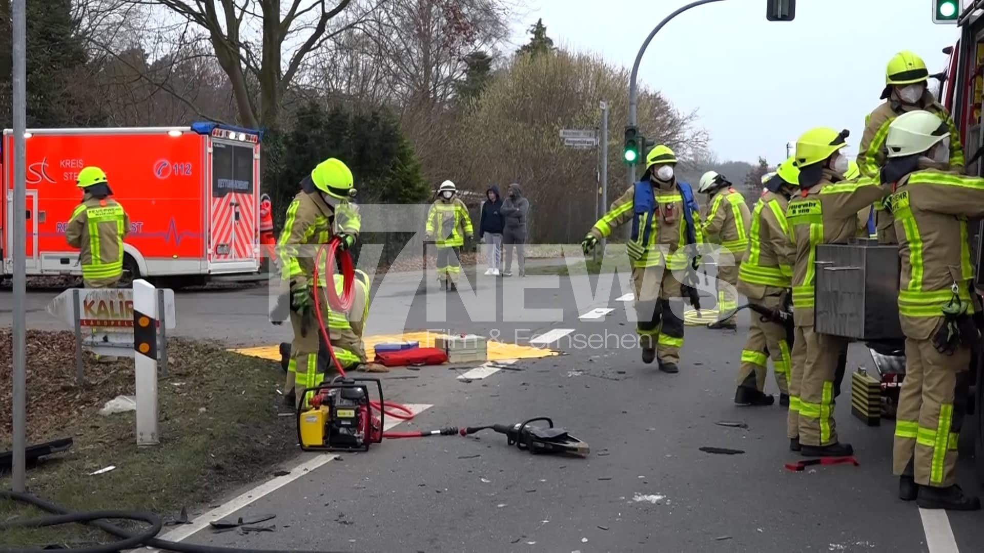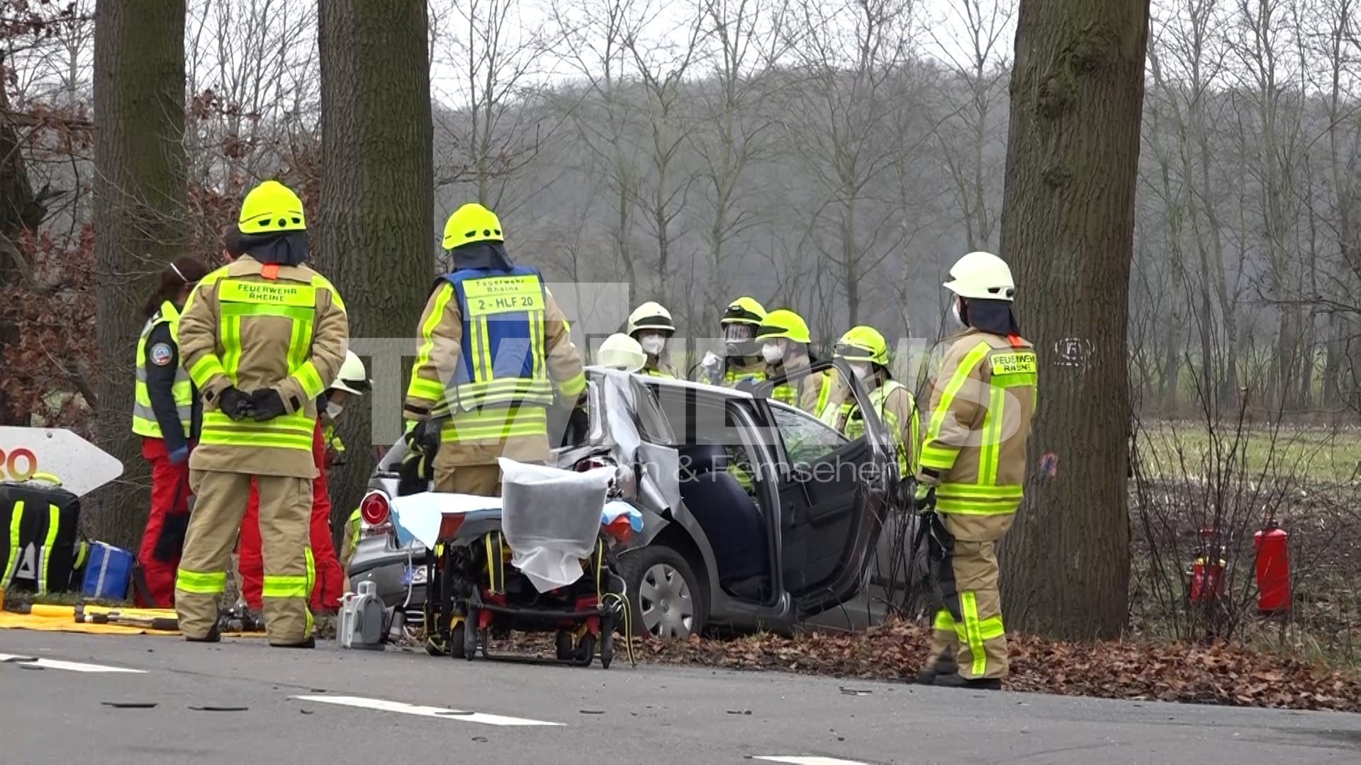 Am Dienstag Mittag kam es auf dem Vennhauser Damm in Rheine zu einem schweren Verksunfall. Eine 52-jährige Frau wollte mit ihrem VW Polo nach links in eine Seitenstraße einbiegen, als ein LKW ungebremst auf das stehende Auto krachte. Der Aufprall war so heftig, dass der Polo gegen einen Baum geschleudert wurde und von diesem dann in den Seitenraum der Straße landete. Die 52-jährige wurde massiv in ihrem Pkw eingeklemmt und musste sofort durch eine Crash-Rettung aus dem Pkw gerettet werden. Die Frau war bei Eintreffen der Rettungskräfte nicht ansprechbar. In dem Rettungswagen wurde sie eine längere Zeit behandelt und anschließend mit dem Rettungshubschrauber in ein Krankenhaus nach Osnabrück geflogen. Auch der Lkw Fahrer wurde bei dem Unfall verletzt. Die Straße am Vennhauser Damm ist aktuell noch gesperrt.