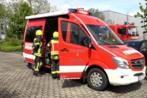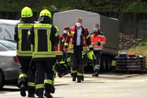 Tragisch, zwei Arbeiter wollen Metallelement unter einem Dach anbringen, als sich das Metall löst – Ein 47 jähriger Mann wird aus der Hebebühne des Krans rausgeschleudert und stirbt – anderer Mann wird schwerverletzt und muss von der Feuerwehr befreit werden – Seelsorger kümmert sich um Angestellte des Betriebs